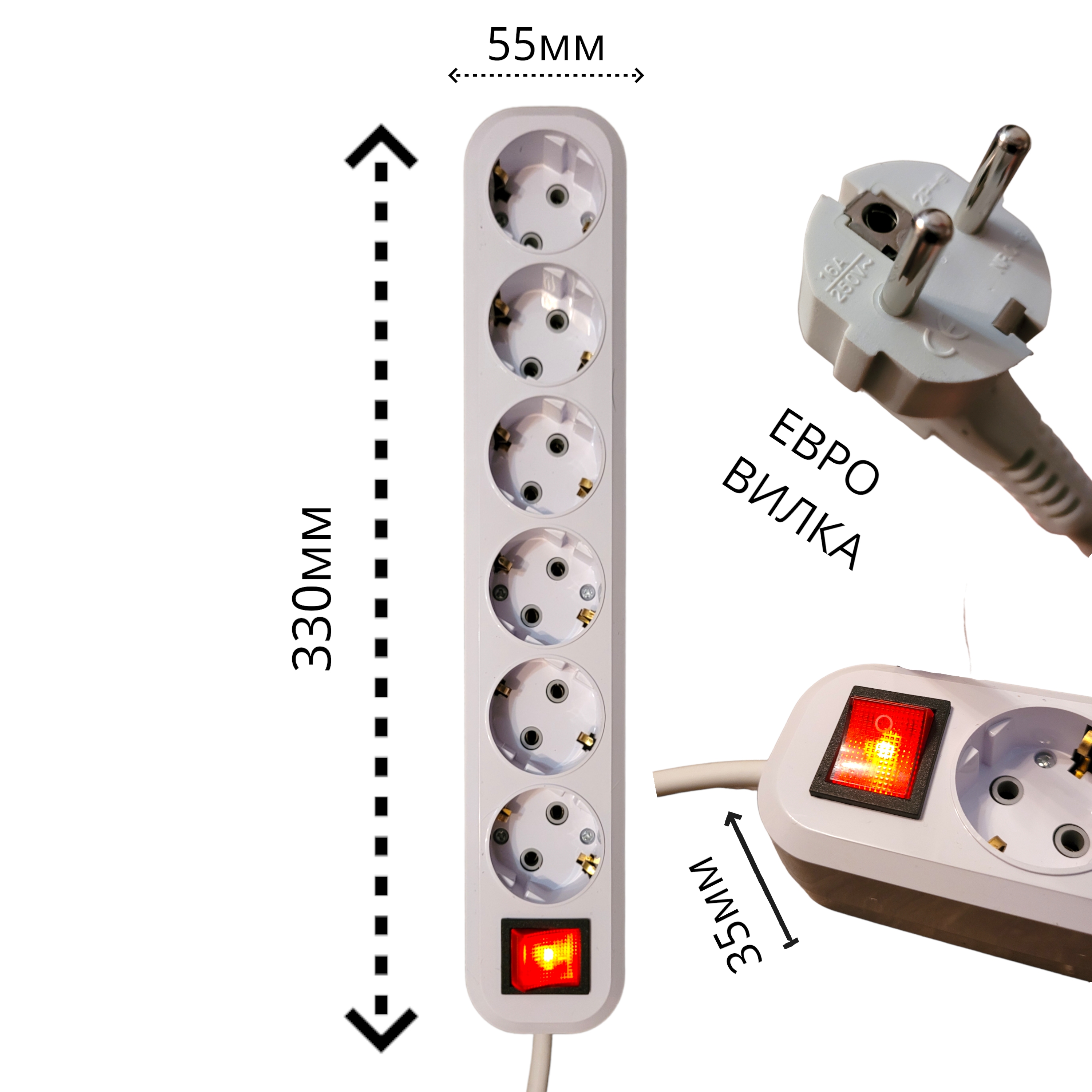Сетевой электрический фильтр 3 метра от "MAXIMUM QUALITY TOOLS" имеет 6 розеток на подключение к сети переменного тока. Удлинитель на 6 розеток предназначен для бытовых приборов. Белый корпус из негорючего АБС-пластика подходит для использования только внутри помещений.
