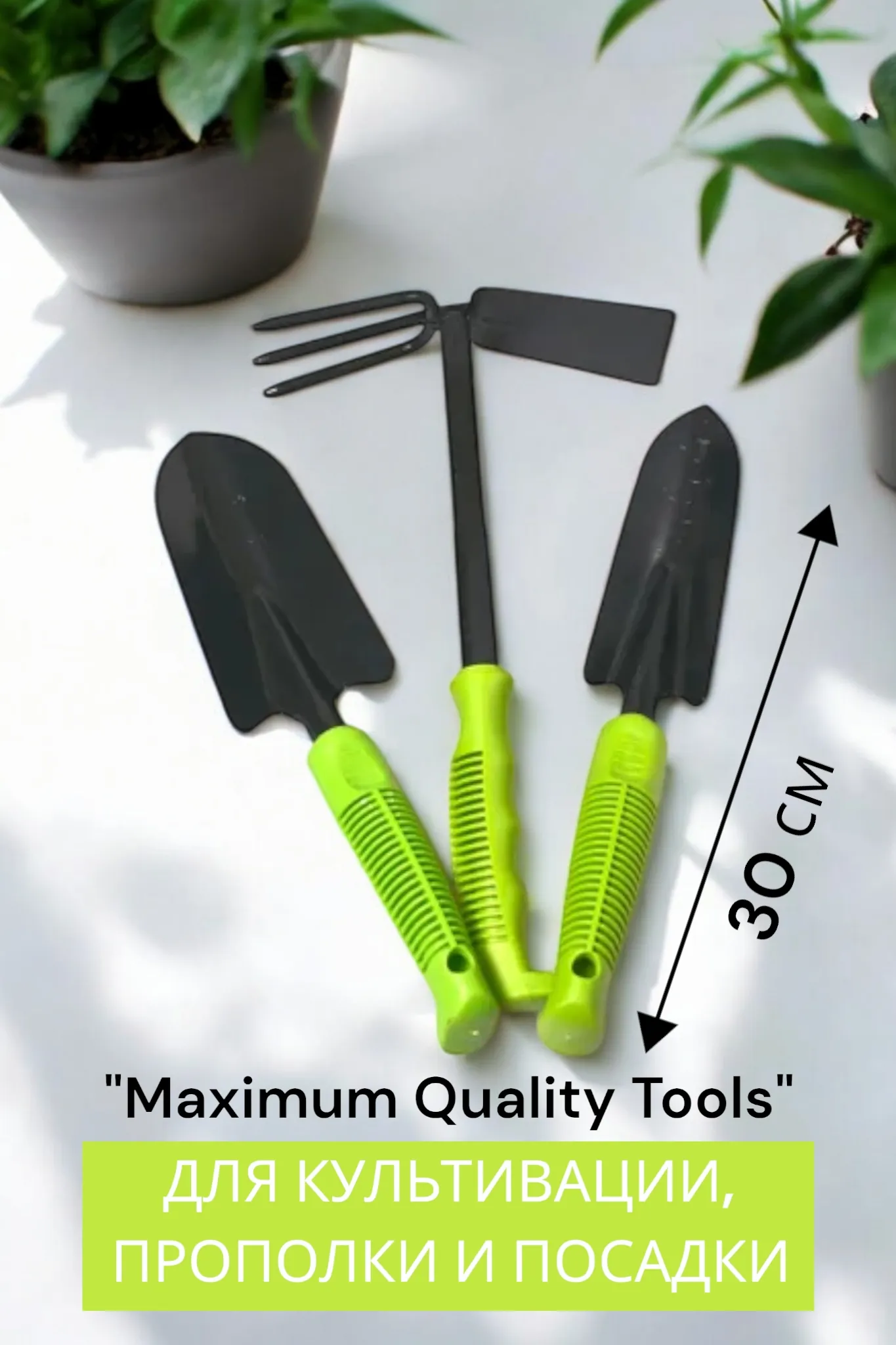 Набор садовых инструментов от "MAXIMUM" предназначен для выполнения самых ответственных работ на участке. Благодаря миниатюрному размеру 30 см. и небольшому весу, вы сможете с ювелирной точностью высаживать рассаду, пересаживать комнатные цветы, рыхлить почву в горшках и пропалывать грядки с клубникой, не рискуя повредить корневую систему растений.
