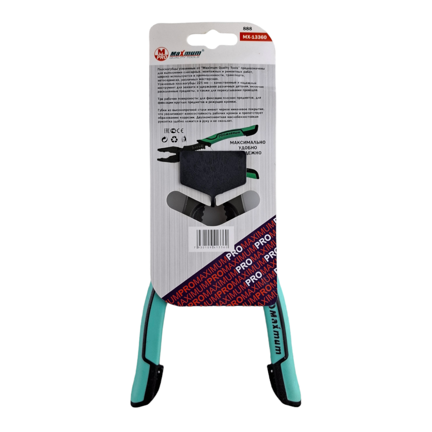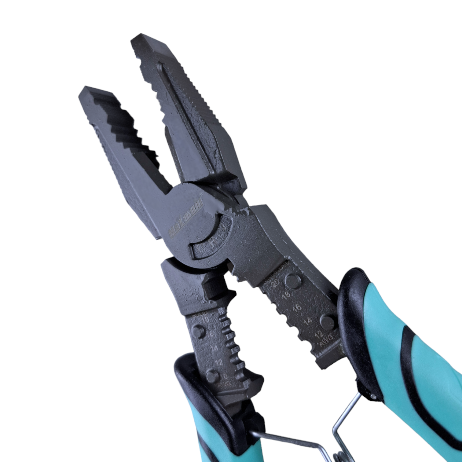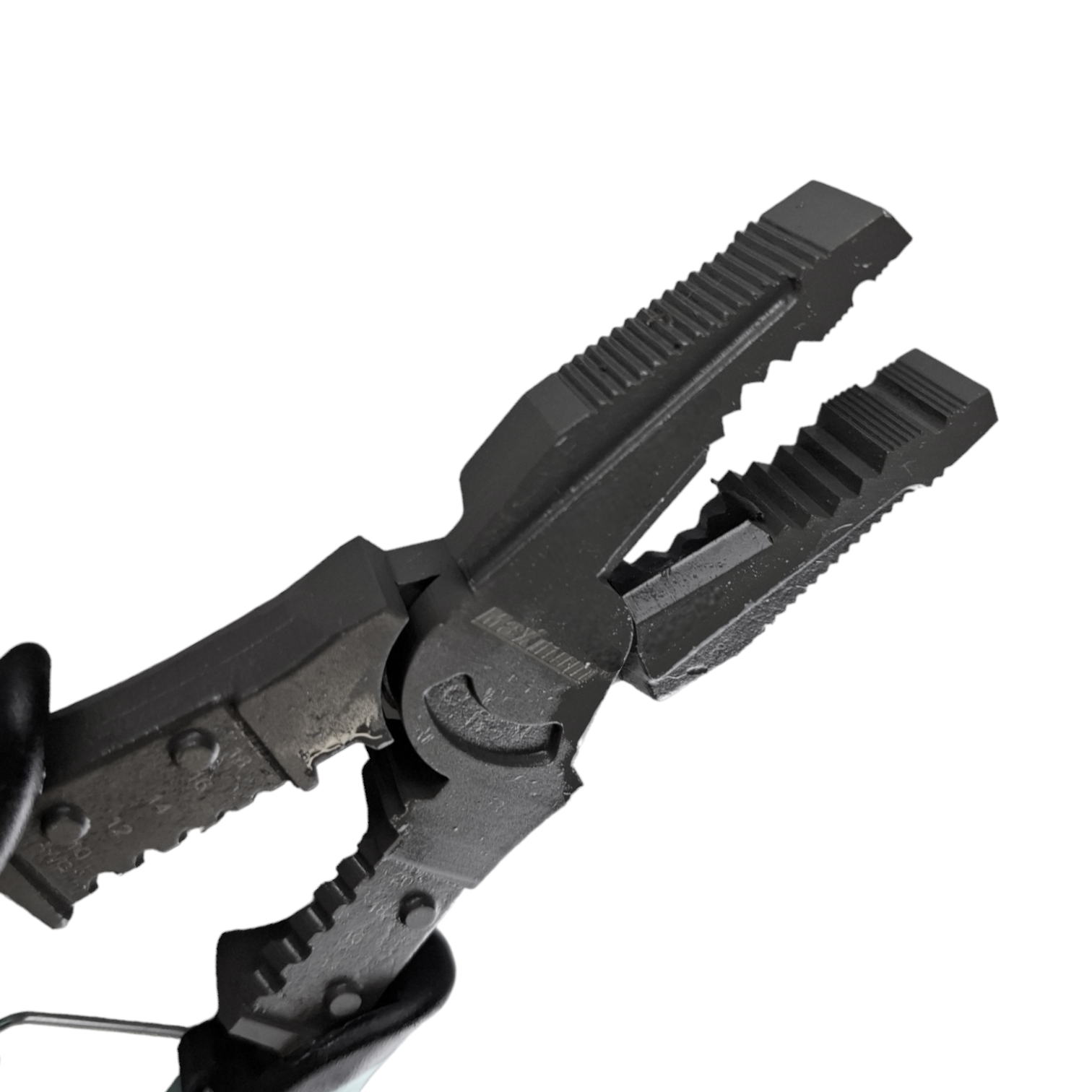 Рабочая часть из оксидированной стали делится на три сектора: плоские губки для захвата тонких деталей (листы, проволока), круглая выемка с гранями для захвата резьбовых и цилиндрических элементов (гайки, болты), и резцы для перекусывания и зачистки проводов.