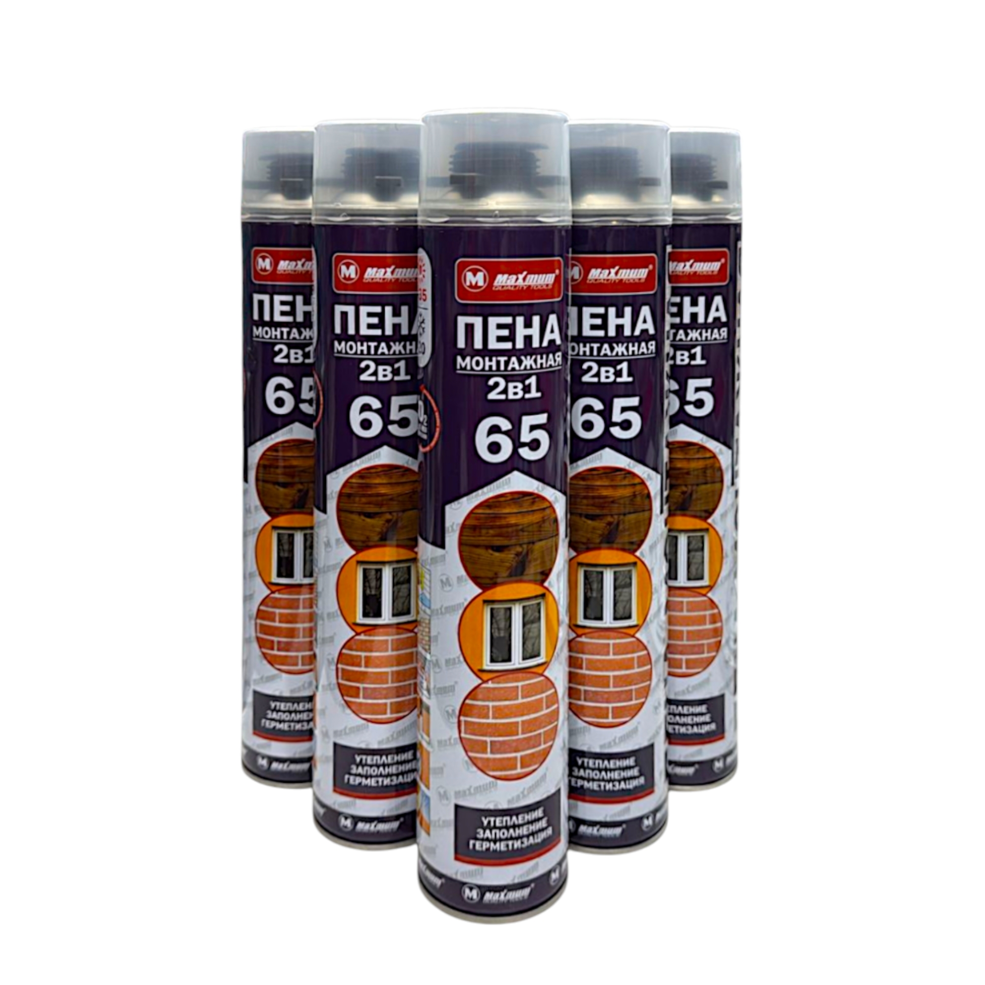 Пена монтажная 65 л 750 мл от бренда Maximum из серии Construction Универсал используется для фиксации, изоляции окон, дверей, стеновых панелей, металлических листов, черепицы и т. д.