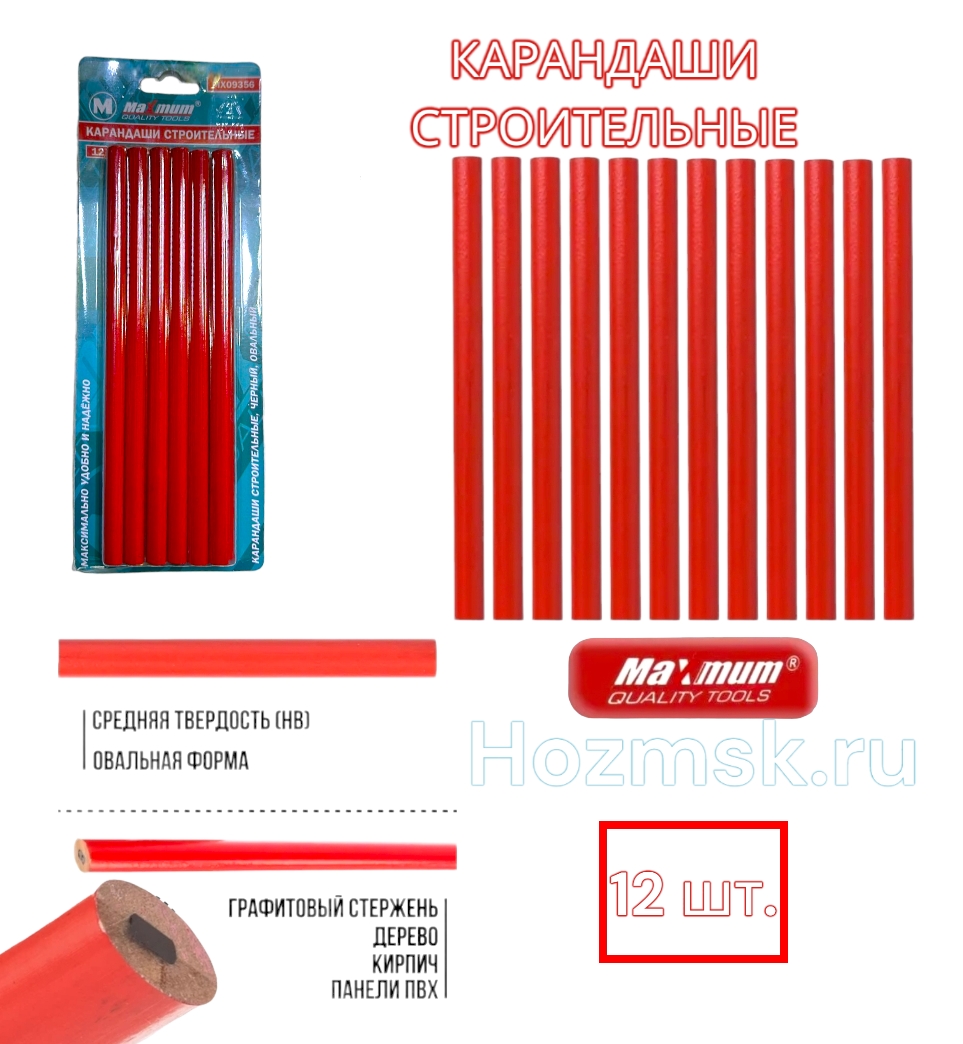 Карандаш строительный 180 мм от " Maximum Quality Tools" предназначен для проведения разметки при выполнении отделочных, малярных и других ремонтных и строительных работ. Широкий графитовый стержень имеет овальную форму, что позволяет ему не скатываться с наклонных поверхностей. Стержень позволяет делать пометки практически на любой поверхности.