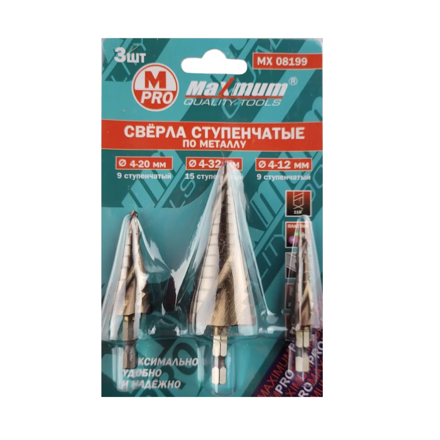 Набор спиральных фрез HSS 4241 от "MAXIMUM QUALITY TOOLS" на 4-12 мм, 4-20 мм ,4-32 мм предназначен для работ с металлическими поверхностями. Сверла имеют ступенчатую спиральную конструкцию, что значительно расширяет диапазон их действия и повышает точность выполнения работ. Данные насадки используются на дрелях для обработки листовой стали, цветных металлов, пластмассы. Оснастка отлично подходит для создания идеально круглого по форме отверстия, без заусенцев и одновременно очищенного от стружки. Применяются без предварительного сверления даже в самых тонких металлах. Угол заточки составляет 118 градусов, что обеспечивает максимальную эффективность рабочего процесса и позволяет создавать отверстия точно и аккуратно, исключая деформацию обрабатываемого материала. Острая режущая кромка конусных сверл предназначена для получения отверстий в металле различного диаметра без перестановки режущего инструмента. Набор содержит ступенчатые сверла HSS на 9 и 15 ступеней с шагом в 2 — 3 мм.