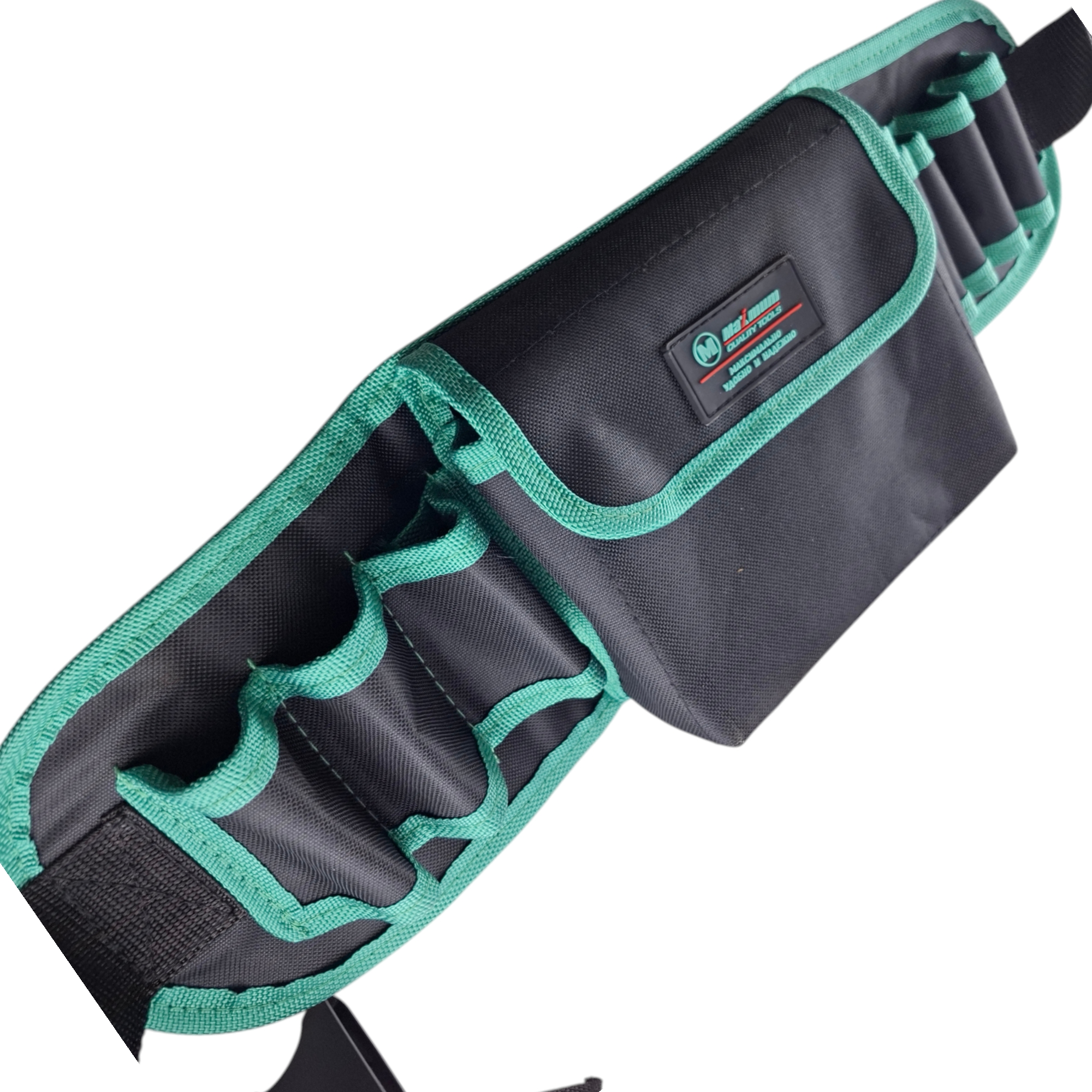 Сумка-пояс для инструментов с ремнем 130 см имеет 8 открытых отсеков и один большой карман на липучке. Пояс монтажника выполнен из прочного водоотталкивающего материала и имеет функциональную конструкцию, которая обеспечивает удобство и безопасность хранения инструмента.